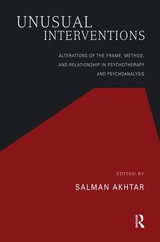 Radical departures from the set and familiar rules of technique often become necessary in the course of psychotherapy and psychoanalysis. These can include conducting a session outside the office, giving advice, not charging fees, talking about oneself, giving a gift to the patient, and so on. Such interventions have so far remained imbued with mystery or, worse, have been the staple of cocktail party conversations. Unusual Interventions brings a variety of exceptional measures together to highlight their indications, risks, and their potential anchors in psychoanalytic theory of human relatedness. In accomplishing this, the book itself becomes an unusual addition to the literature on the technique of psychotherapy and psychoanalysis.