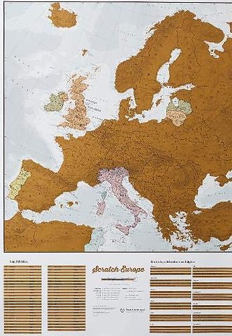 Brilliant concept map for travelling through Europe allowing visited destinations to be scratched off revealing a styled map underneath. The perfect map gift for the travel enthusiast allowing complete personalisation of the map to display a unique travel story.