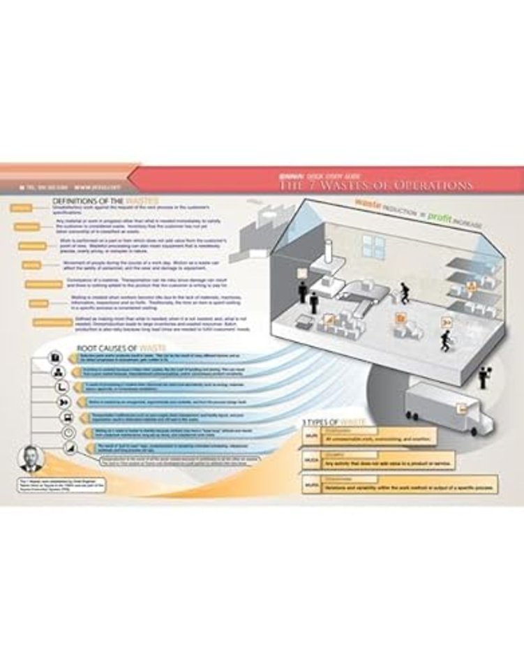 Comprehensive yet simple enough to quickly reference on the shop floor, Enna’s 7 Wastes of Lean Quick Guide can help build understanding and confidence in eliminating waste from the workplace. The 7 Wastes Quick Guide gives not only the definitions of the 7 Wastes but also the symptoms of each waste to help enhance your ability to see waste. Graphics help provide visual references to reinforce definitions and concepts.