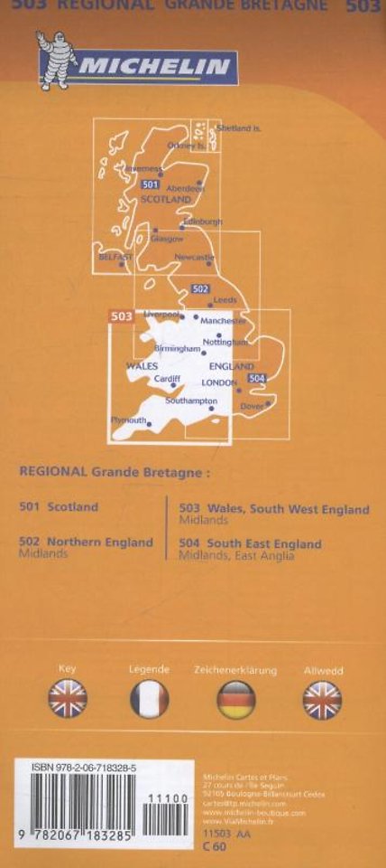 Michelin Wegenkaart 503 Wales, Engeland Zuidwest Midlands