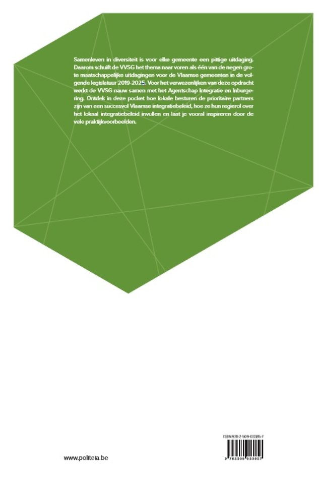 Samenleven in diversiteit is voor elke gemeente een pittige uitdaging. Daarom schuift de VVSG het thema naar voren als één van de negen grote maatschappelijke uitdagingen voor de Vlaamse gemeenten in deze legislatuur. Voor het verwezenlijken van deze opdracht werkt de VVSG nauw samen met het Agentschap Integratie en Inburgering. Ontdek in deze pocket hoe lokale besturen de prioritaire partners zijn van een succesvol Vlaamse integratiebeleid, hoe ze hun regierol over het lokaal integratiebeleid invullen en laat je vooral inspireren door de vele praktijkvoorbeelden.