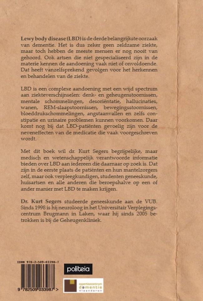Met het boek De vergeten dementie. Een begrijpelijk zicht op Lewy body dementie wil dr. Kurt Segers begrijpelijke, maar medisch en wetenschappelijk verantwoorde informatie bieden over LBD aan iedereen die daarnaar op zoek is. Dat zijn in de eerste plaats de patiënten en hun mantelzorgers zelf, maar ook verpleegkundigen, studenten geneeskunde, huisartsen en alle anderen die beroepshalve op een of ander manier met LBD te maken krijgen.