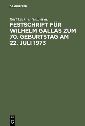 Festschrift Fur Wilhelm Gallas Zum 70. Geburtstag Am 22. Juli 1973