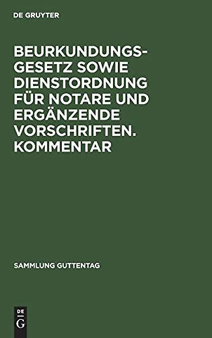 Beurkundungsgesetz Sowie Dienstordnung Fur Notare Und Erganzende Vorschriften. Kommentar