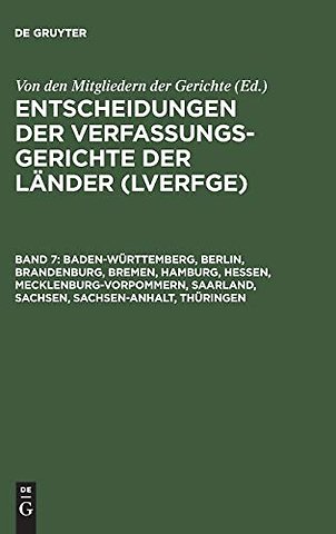Entscheidungen der Verfassungsgerichte der Lander (LVerfGE), Band 7, Baden-Wurttemberg, Berlin, Brandenburg, Bremen, Hamburg, Hessen, Mecklenburg-Vorpommern, Saarland, Sachsen, Sachsen-Anhalt, Thuringen
