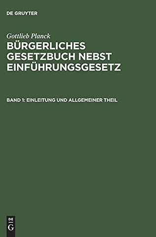 Burgerliches Gesetzbuch nebst Einfuhrungsgesetz, Band 1, Einleitung und Allgemeiner Theil