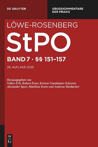 The Löwe-Rosenberg explains the StPO, the GVG, the EGGVG, and the criminal procedure provisions of the ECHR and the ICCPR. This volume contains the most comprehensive commentary on the German law of criminal procedure. Its renowned expert editors and authors from scholarship and practice are known for their academically grounded yet practice-based explanations. The 28th edition was launched in 2023 and will appear in 18 volumes.