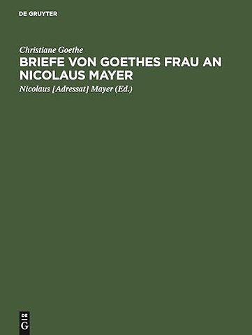 Briefe von Goethes Frau an Nicolaus Mayer – Mit Einleitung, Facsimiles, einer Lebensskizze Nikolaus Mayers und Porträts