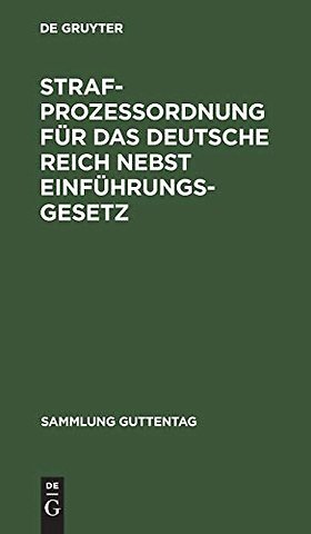 Strafprozeßordnung Fur Das Deutsche Reich Nebst Einfuhrungsgesetz