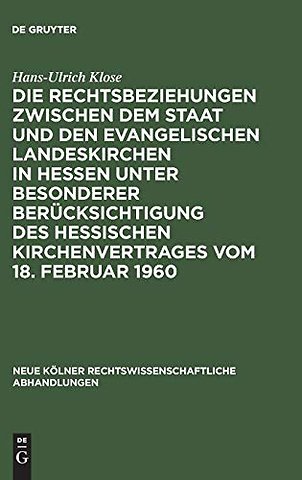 Die Rechtsbeziehungen zwischen dem Staat und den Evangelischen Landeskirchen in Hessen unter besonderer Berucksichtigung des Hessischen Kirchenvertrages vom 18. Februar 1960