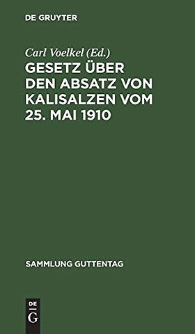 Gesetz über den Absatz von Kalisalzen vom 25. Ma – Text–Ausgabe mit Anmerkungen und Sachregister
