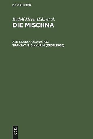 Bikkurim (Erstlinge) – Text, Übersetzung und Erklärung. Nebst einem textkritischen Anhang