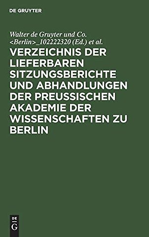 Verzeichnis Der Lieferbaren Sitzungsberichte Und Abhandlungen Der Preußischen Akademie Der Wissenschaften Zu Berlin