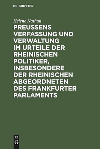 Preussens Verfassung Und Verwaltung Im Urteile Der Rheinischen Politiker, Insbesondere Der Rheinischen Abgeordneten Des Frankfurter Parlaments