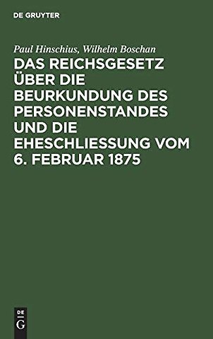 Das Reichsgesetz Uber Die Beurkundung Des Personenstandes Und Die Eheschließung Vom 6. Februar 1875