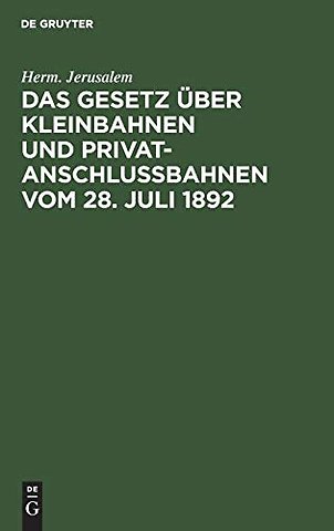 Das Gesetz uber Kleinbahnen und Privatanschlußbahnen vom 28. Juli 1892