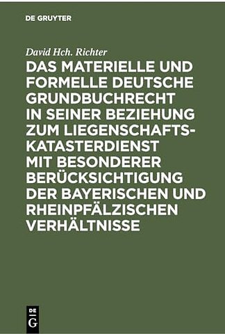 Das Materielle Und Formelle Deutsche Grundbuchrecht in Seiner Beziehung Zum Liegenschaftskatasterdienst Mit Besonderer Berucksichtigung Der Bayerischen Und Rheinpfalzischen Verhaltnisse