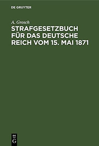 Strafgesetzbuch Fur Das Deutsche Reich Vom 15. Mai 1871