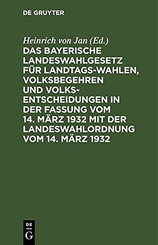 Das Bayerische Landeswahlgesetz Fur Landtagswahlen, Volksbegehren Und Volksentscheidungen in Der Fassung Vom 14. Marz 1932 Mit Der Landeswahlordnung Vom 14. Marz 1932