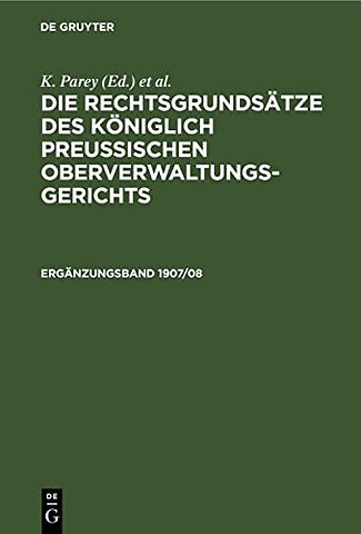 Die Rechtsgrundsatze Des Koniglich Preussischen Oberverwaltungsgerichts. 1907/08, Erganzungsband