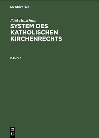 Paul Hinschius: System Des Katholischen Kirchenrechts. Band 5