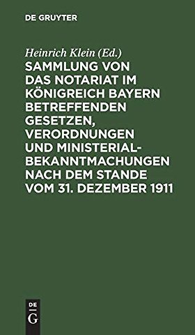 Sammlung Von Das Notariat Im Konigreich Bayern Betreffenden Gesetzen, Verordnungen Und Ministerialbekanntmachungen Nach Dem Stande Vom 31. Dezember 1911