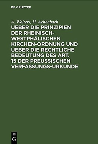 Ueber Die Prinzipien Der Rheinisch-Westphalischen Kirchen-Ordnung Und Ueber Die Rechtliche Bedeutung Des Art. 15 Der Preußischen Verfassungs-Urkunde