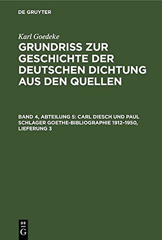 Carl Diesch Und Paul Schlager Goethe-Bibliographie 1912-1950, Lieferung 3