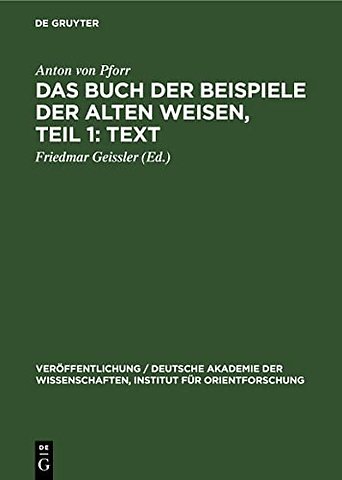 Das Buch Der Beispiele Der Alten Weisen, Teil 1: Text