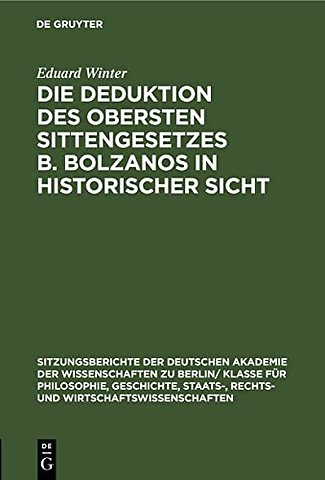 Die Deduktion Des Obersten Sittengesetzes B. Bolzanos in Historischer Sicht
