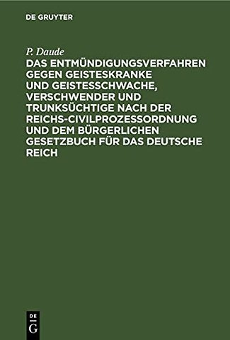 Das Entmundigungsverfahren Gegen Geisteskranke Und Geistesschwache, Verschwender Und Trunksuchtige Nach Der Reichs-Civilprozeßordnung Und Dem Burgerlichen Gesetzbuch Fur Das Deutsche Reich