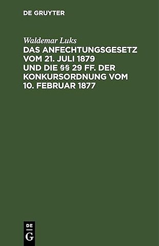 Das Anfechtungsgesetz Vom 21. Juli 1879 Und Die §§ 29 Ff. Der Konkursordnung Vom 10. Februar 1877