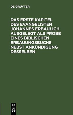 Das Erste Kapitel Des Evangelisten Johannes Erbaulich Ausgelegt ALS Probe Eines Biblischen Erbauungsbuchs Nebst Ankundigung Desselben