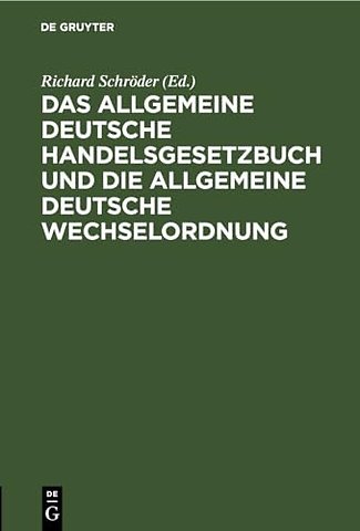 Das Allgemeine Deutsche Handelsgesetzbuch Und Die Allgemeine Deutsche Wechselordnung