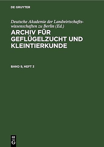 Archiv Fur Geflugelzucht Und Kleintierkunde. Band 9, Heft 3