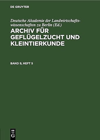 Archiv Fur Geflugelzucht Und Kleintierkunde. Band 9, Heft 5