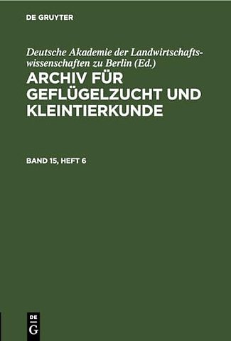 Archiv Fur Geflugelzucht Und Kleintierkunde. Band 15, Heft 6