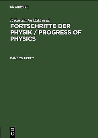 Fortschritte Der Physik / Progress of Physics. Band 29, Heft 7