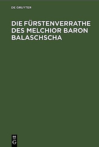 Die Furstenverrathe Des Melchior Baron Balaschscha
