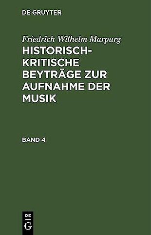 Friedrich Wilhelm Marpurg: Historisch–kritische Beyträge zur Aufnahme der Musik. Band 4