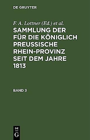 Sammlung Der Fur Die Koniglich Preussische Rhein-Provinz Seit Dem Jahre 1813. Band 3