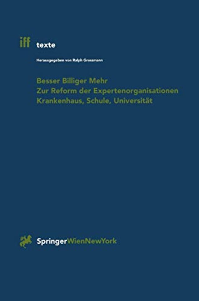 Anhand des Konzepts der Expertenorganisation reflektiert der Band über den spezifischen Veränderungsbedarf der Systeme Krankenhaus, Schule und Universität. Von konkreten Forschungs- und Beratungsprojekten des Instituts für Interdisziplinäre Forschung und Fortbildung ausgehend, werden Kernthemen der Reform des öffentlichen Dienstes diskutiert: Dezentralisierung, Leitbildentwicklung, Management von Veränderung, Effizienz und Kundenorientierung.