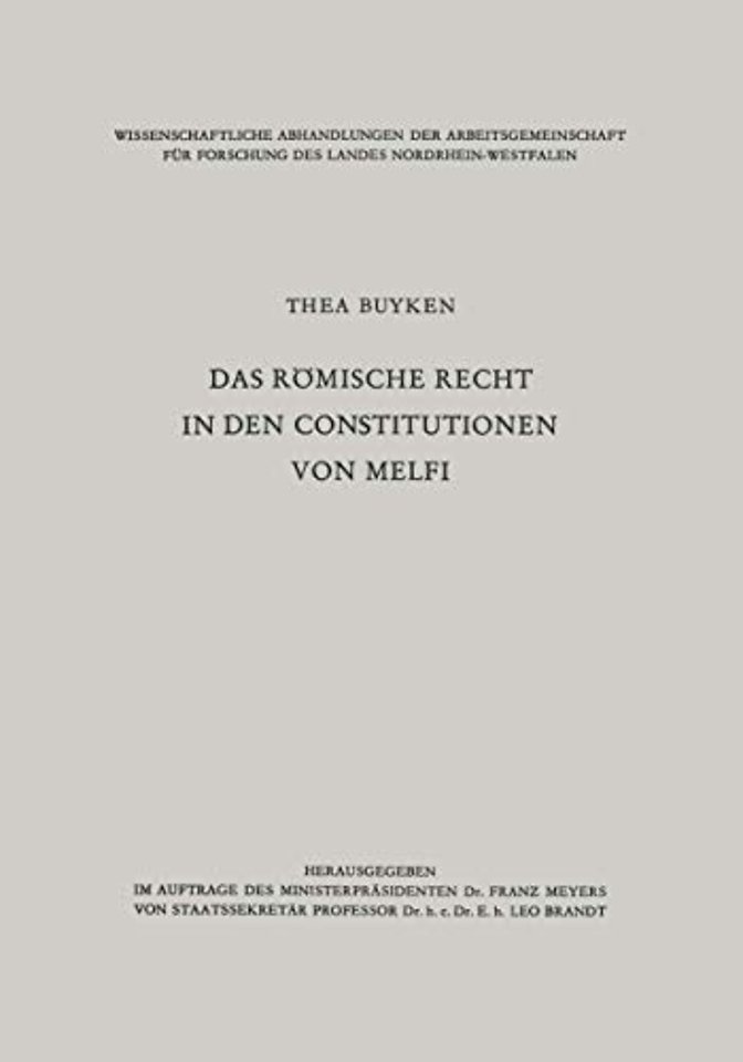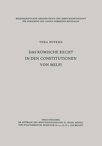 Mit dankenswerter Unterstützung der Arbeitsgemeinschaft des Landes Nordrhein-Westfalen bereiten seit einigen Jahren C. A. Willemsen (Bonn), Thea von der Lieck-Buyken (Köln), die Verfasserin der vorliegenden Abhand lung, und der Unterzeichnete eine Neuausgabe der Konstitutionen von Melfi, des Gesetzeswerkes Friedrichs II. von Hohenstaufen (1231), vor. Nach Ermittlung der in den Archiven noch vorhandenen lateinischen und grie chischen Handschriften durch C. A. Willemsen und deren Kollationierung erscheint nunmehr der Nachweis der den Konstitutionen zugrundeliegen den Quellen, die Fertigstellung eines schon begonnenen Wörterbuches und der Versuch, einen authentischen Text festzulegen, als die nächste wichtige Aufgabe. Ein Schritt auf diesem Wege soll die vorliegende Abhandlung sein, die römische und byzantinische Quellen der Konstitutionen nachweist. Ergänzungen dieser Arbeit nach der Seite des germanischen und arabi schen Rechtes sind in Vorbereitung bzw. in Aussicht genommen. Als Nebenfrucht der Editionsarbeit konnte der Unterzeichnete bereits im Jahre 1957 eine Studie über "Das Gottesurteil in den Konstitutionen von Melfi Friedrichs 11. von Hohenstaufen (1231)" veröffentlichen (Festschrift für Walter Schmidt-Rimpler, Karlsruhe 1957, S. 9-21). Herrn Kollegen Envin Seidl (Köln), dem das Manuskript im Auftrage der Arbeitsgemeinschaft für Forschung des Landes Nordrhein-Westfalen zur Begutachtung vorgelegen hat, sei an dieser Stelle, zugleich im Namen der Verfasserin, herzlich für sein Interesse und seine Mitarbeit gedankt.