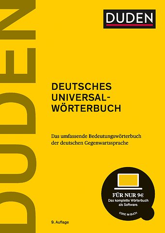 Die 9., überarbeitete und erweiterte Auflage wurde mit rund 1 000 aktuellen Wörtern unserer Zeit ergänzt. Das „Deutsche Universalwörterbuch" umfasst mehr als 500 000 Stichwörter, Redewendungen und Anwendungsbeispiele. Auch Fach- und Sondersprachen, Mundarten und Stilebenen werden dabei berücksichtigt. Rund 250 000 zusätzliche Angaben zu Bedeutungen, Rechtschreibung, Aussprache, Herkunft, Grammatik und Stil vervollständigen das Werk. Das übersichtliche, zweifarbige Layout führt Sie schnell zum gesuchten Wort; eine tabellarische Kurzgrammatik zum Lernen und schnellen Nachschlagen sowie eine kompakte Sprachstatistik runden das Buch ab.