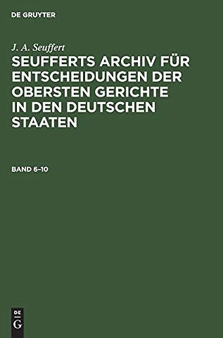 J. A. Seuffert: Seufferts Archiv Fur Entscheidungen Der Obersten Gerichte in Den Deutschen Staaten. Band 6-10