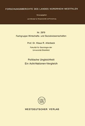 Vorbemerkung.- Einleitung: Politische Gleichheit.- Dimensionen politischer Partizipation.- Soziale Schicht im internationalen Vergleich.- “Politische Ungleichheit” im internationalen Vergleich.- Die Partizipationsdisparitäten in den Acht Ländern.- Ursachen politischer Ungleichheit.- Die politische Repräsentativität der Aktivisten.- Zusammenfassung.