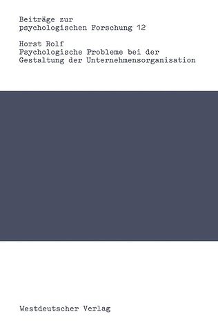 A. Einleitung.- B. Allgemeiner Teil.- I. Zu den betriebswirtschaftlichen Begriffen “Unternehmung” und “Organisation”.- II. Über Begriff und Wesen der Psychologie.- III. Zur Bedeutung der Gestalttheorie für die Gestaltung der Unternehmensorganisation.- C. Spezieller Teil.- I. Psychologische Probleme bei der Gestaltung der Aufbauorganisation der Unternehmung.- II Psychologische Probleme bei der Untersuchung und Gestaltung organisatorischer Arbeitsabläufe in der Verwaltung der Unternehmung.- D. Zusammenfassung.- Über den Autor.