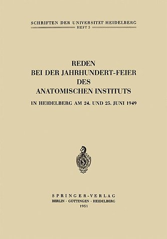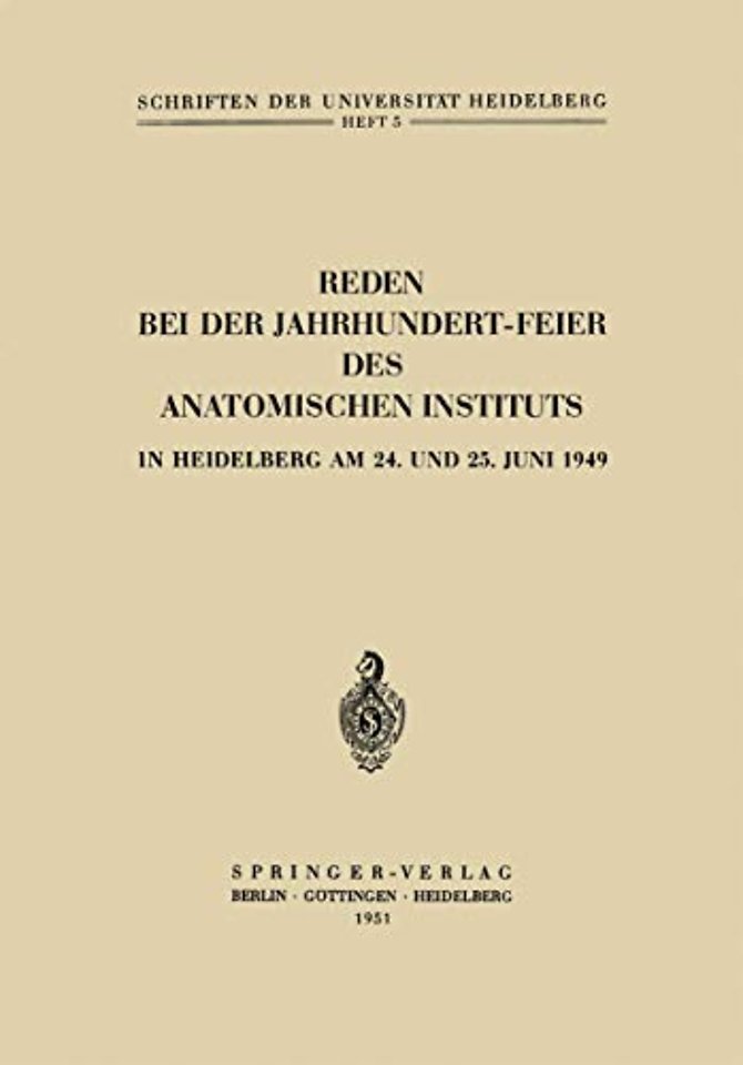 Reden bei der Jahrhundert-Feier des Anatomischen Instituts in Heidelberg am 24. und 25. Juni 1949