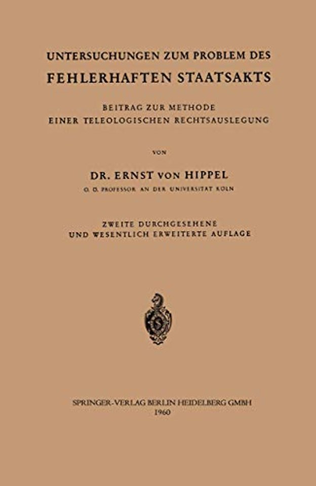 Erster Teil Einführung.- Zweiter Teil Die positivistische Behandlung des fehlerhaften Staatsakts.- Dritter Teil Notwendigkeit und Verfahren teleologischer Rechtsauslegung.- Vierter Teil Versuch einer teleologischen Behandlung des fehlerhaften Staatsakts.- Fünfter Teil Rückblick und Ausblick.