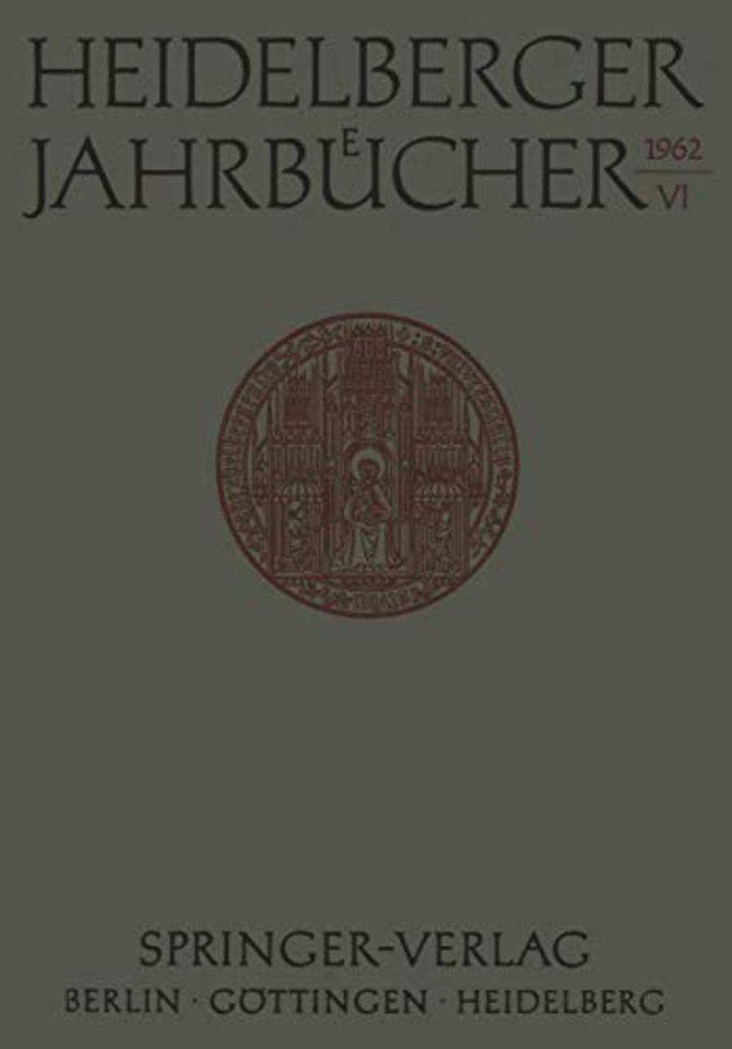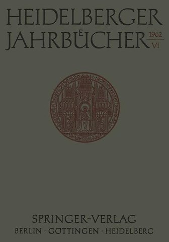Aufsätze.- Den Toten des 23. 9. 1961 zum Gedenken 1.- Hans Schaefer, S. 1 Verzeichnis seiner Schriften. Zusammengestellt im Seminar für Alte Ge-schichte der Universität Heidelberg, S..- Jacques Moreau, S. 9 Verzeichnis seiner Schriften. Zusammengestellt im Institut für Alte Geschichte der Universität Saarbrücken, S..- Peter Sattler, Leo Teutsch, Martin Friedenthal, Christoph Meinhard Bulst, Hans Hermann Rohrbach, Roland Maier, Gerhard Müller, Siegfried Ries, S..- Menschen und Memoiren.- Nietzsches antichristliche Bergpredigt.- Edme Bouchardon in Rom und seine Büsten Papst’ Clemens XII.- Jean Marot in den Diensten des Kurfürsten Karl Ludwig von der Pfalz.- Die Justizpolitik Friedrichs des Großen.- Die Studienreise Robert Bunsens nach Berlin-Paris-Wien 1832/1833. Briefe an seine Eltern. Herausgegeben von Karl Freudenberg.- Aus dem ärztlichen Wirken der Heidelberger Medizinischen Fakultät in den Jahren nach dem 30jährigen Krieg.- Persönliche Erinnerungen an Ludolf von Krehl.- Pathologische Physiologie als Arbeitsrichtung von Ludolf Krehl.- Ludolf Krehl und der medizinische Personalismus.- Ein römischer Supra-Librosband des 18. Jahrhunderts in der Universitätsbibliothek Heidelberg.- Bibliographie.- Schriften-Verzeichnis der Heidelberger Dozenten. Veröffentlichungen aus dem Jahre 1961.- Theologische Fakultät, S. 217 — Juristische Fakultät, S. 221 — Medizinische Fakultät, S. 226 — Philosophische Fakultät und Dolmetscher-Institut, S. 245 Naturwissenschaftlich-Mathematische Fakultät, S..- Ergänzungen und Berichtigungen zum Schriften-Verzeichnis der Jahre 1957–1960.- der Bände I/1957-VI/1962.